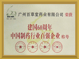 建國60周年中國制藥行業(yè)百強企業(yè)
